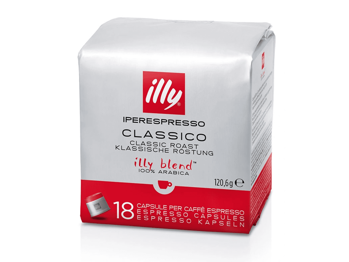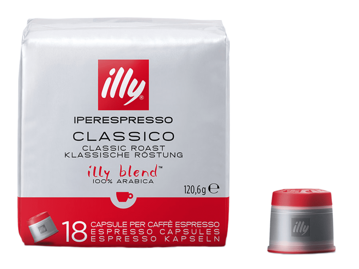 De Classico-branding van de unieke 100% Arabica-blend van illy heeft een fluweelzachte smaak. Heerlijk als lungo en espresso. Intensiteit 7 uit 12.